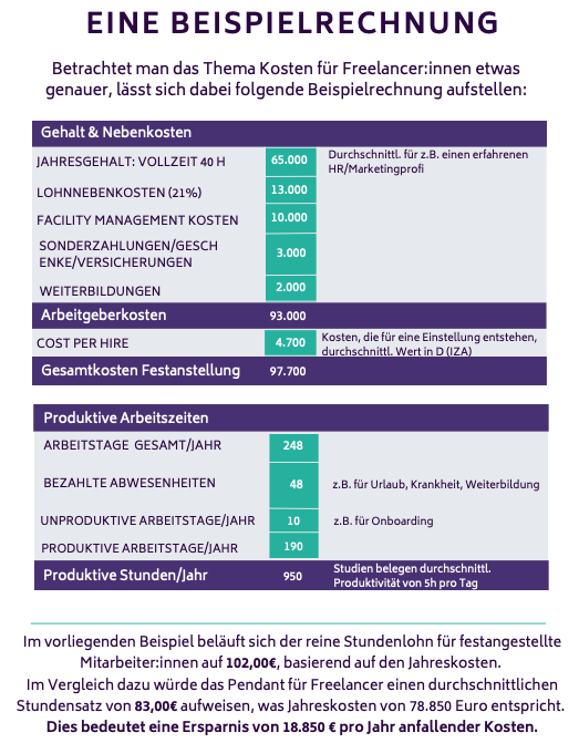 Freelancer sind teurer als Angestellte. Dieses Argument hören wir in Gesprächen mit HR-Teams und Geschäftsführungen immer wieder. Und es wirkt auf den ersten Blick auch völlig logisch. Wenn ein Freelancer 90 oder 100 Euro pro Stunde verlangt und ein Angestellter – heruntergerechnet – scheinbar nur 30 oder 40 Euro kostet, ist die Rechnung schnell gemacht.